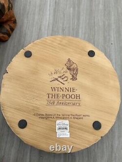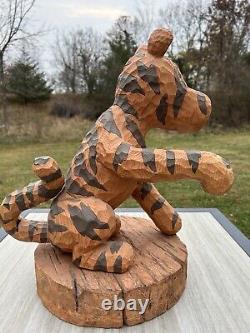 Measures about 19" tall, base is 12" in diameter. This rare Disney Tigger figurine is a must-have for any collector. Crafted in faux wood carve, this big figure of Tigger from Winnie the Pooh franchise stands tall at 75th anniversary.