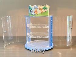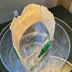 Display case measures 22" in height with a 15" diameter. Case has two locking sides and includes the key! Top display sign is taped over plastic formed top and does have some missing/cracked areas. Each side depicts a different scene, one side displays nicely and the other has more damage.