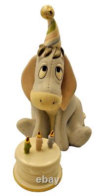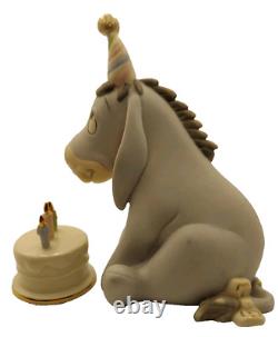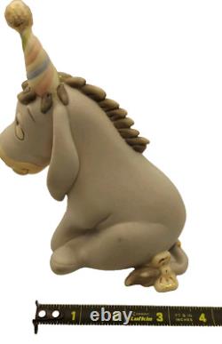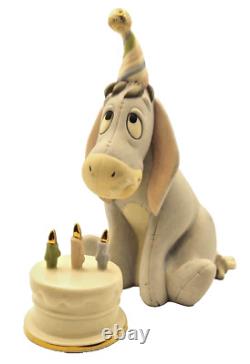 It is in great condition, with no chips or cracks. The bottom has minor scuff marks from the shelf. It has had only one owner. Celebrate a beloved character's special day with the Lenox Disney Eeyore's Birthday Wish Figurine. This medium-sized ceramic piece showcases Eeyore, his friend Pooh, and Tigger enjoying a birthday surprise, meticulously crafted to capture the essence of these classic Winnie the Pooh characters.