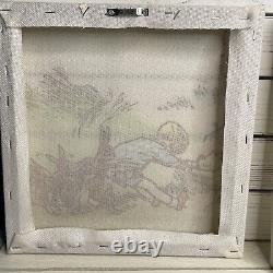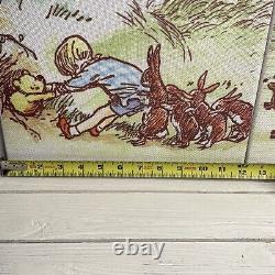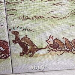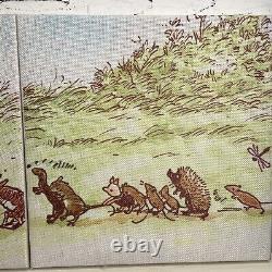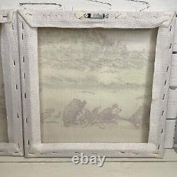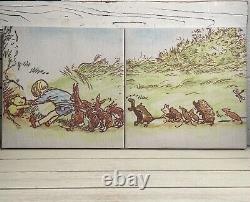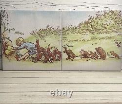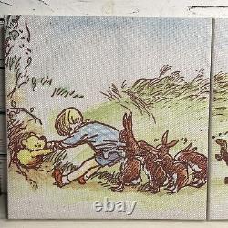 Adorable classique Winnie l'Ourson coincé dans une scène de trou de lapin, décoration murale en toile, ensemble de deux. Mesure environ 12" x 12" chacune.