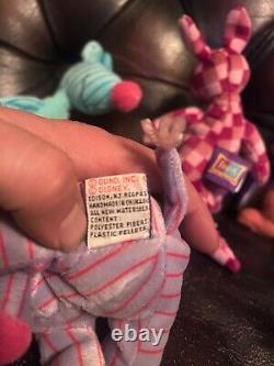 Embarquez pour une aventure fantaisiste avec les personnages bien-aimés du Bois de Cent Acres grâce à ce lot enchanteur de six GUND Bean Bags, mettant en vedette les emblématiques Heffalumps et Woozles de la série classique Disney Winnie l'Ourson. Chaque peluche est fabriquée avec soin, capturant l'essence de ces charmants méchants et de leurs escapades malicieuses, parfaite pour apporter une touche de magie et de nostalgie à votre collection. Idéales pour les fans de tous âges, ces Bean Bags sont un hommage délicieux aux contes intemporels de Winnie et de ses amis. Que vous recréiez vos scènes préférées ou que vous les exposiez fièrement sur votre étagère, ces jouets GUND sont sûrs d'éveiller la joie et de raviver de tendres souvenirs. Superbes peluches d'exposition, voir les photos, merci.