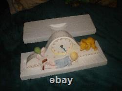 Cette horloge de mantel Charpente Winnie l'Ourson est en parfait état et a été testée, elle fonctionne très bien. La boîte est un peu usée mais c'est la boîte d'origine, et elle est également fournie avec 6 nouvelles piles. Elle mesure 33 cm de long, 14 cm de haut et 10,5 cm de large.