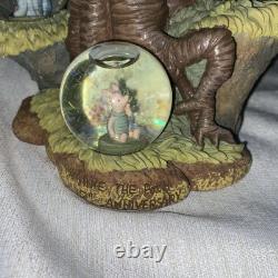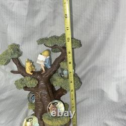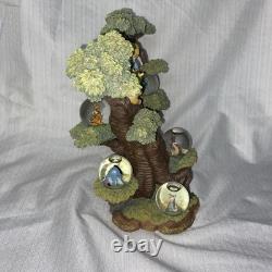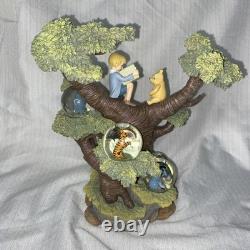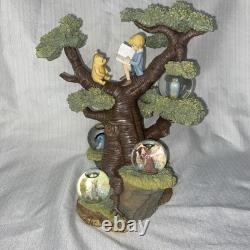 Superbe statue commémorative avec Christophe Robin et Winnie l'Ourson dans un arbre en train de lire un livre. D'autres personnages de Winnie l'Ourson à côté dans de petites boules à neige.